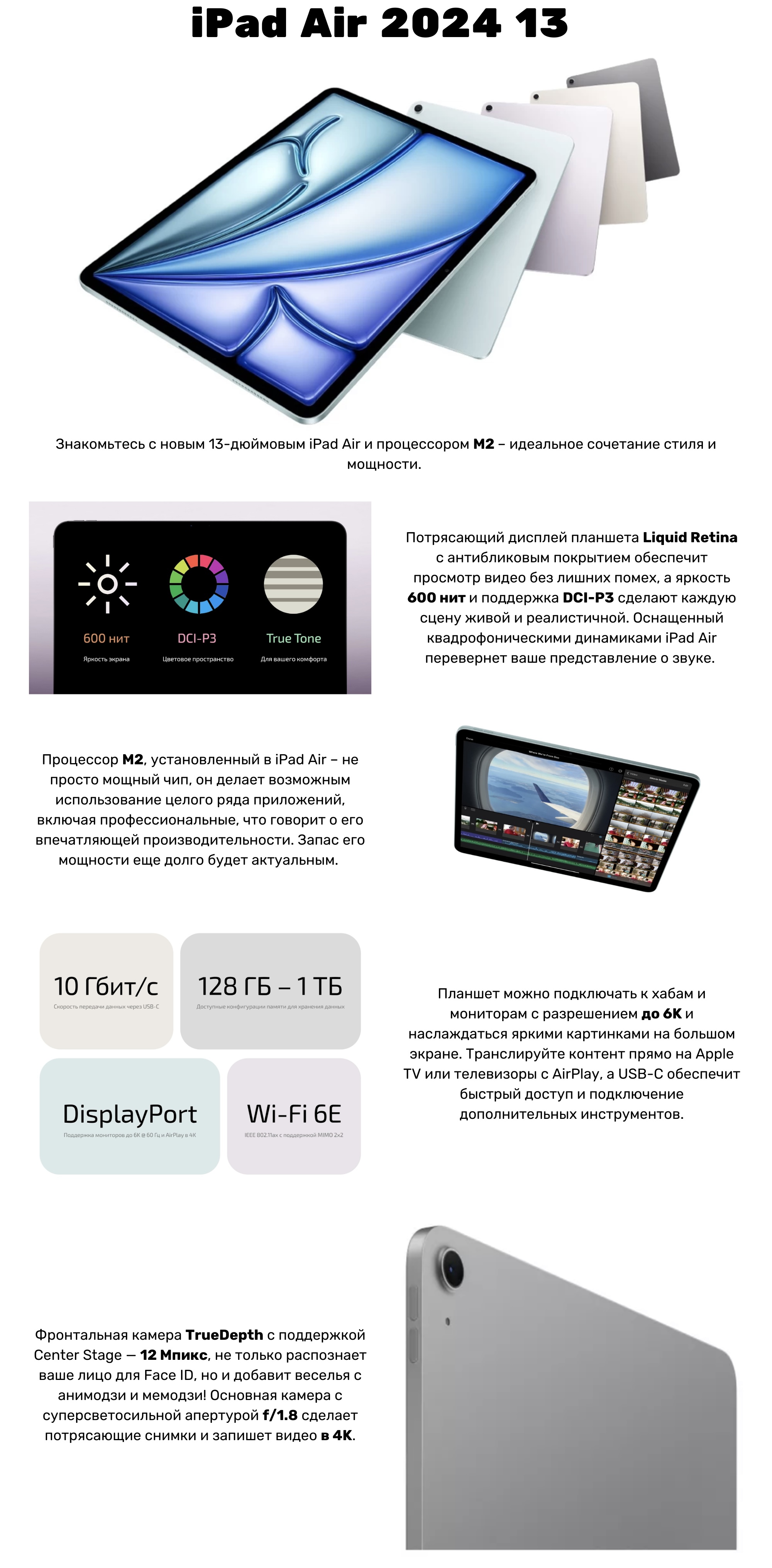 Планшет Apple iPad Air 13 (2024) 512 ГБ Wi-Fi + Cellular Сияющая звезда