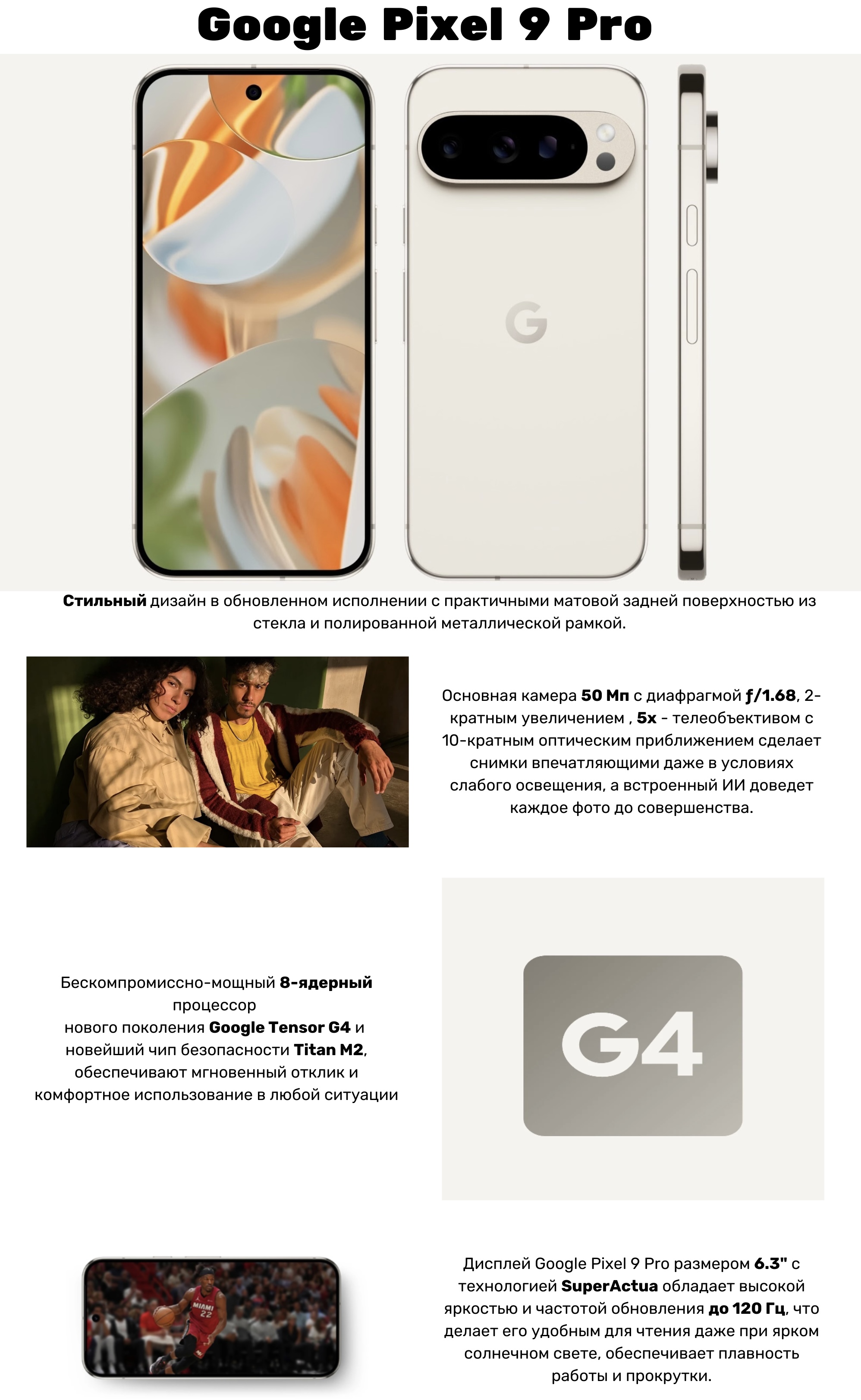 Смартфон Google Pixel 9 Pro 128 ГБ Ореховый