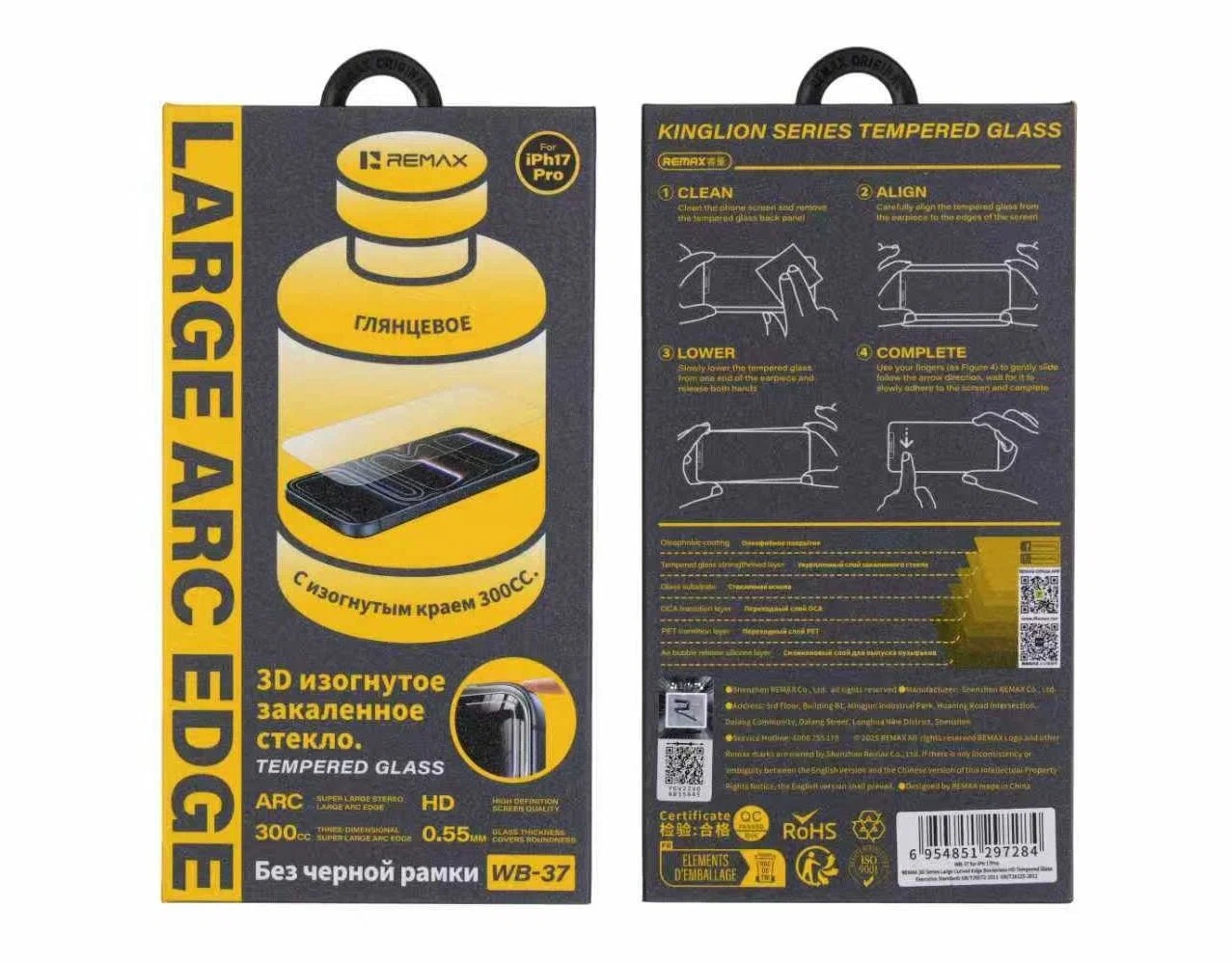 Защитное стекло Remax для iPhone 17 Pro Max без рамки с олеофобным покрытием